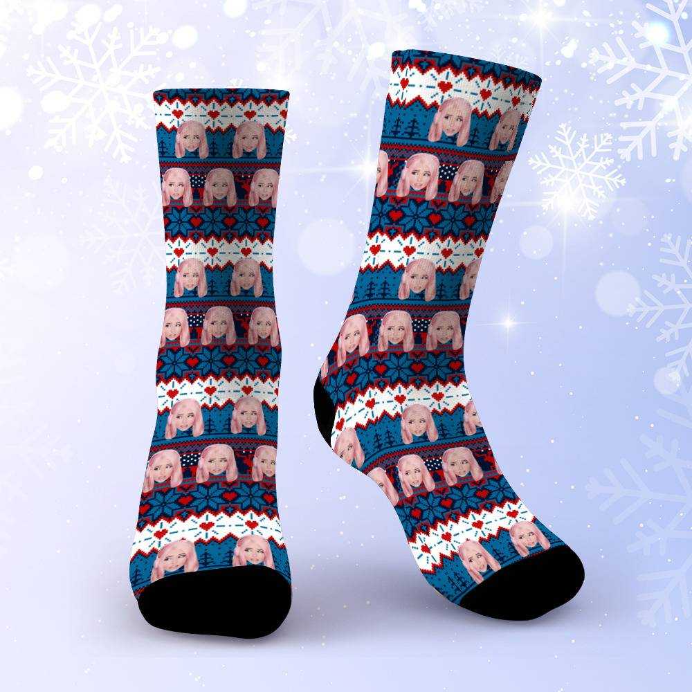Belle Delphine Socks Custom Photo Socks Christmas Socks Heart Stripe Print - Put Your Face On Custom Face Socks. Create the Perfect Gift!